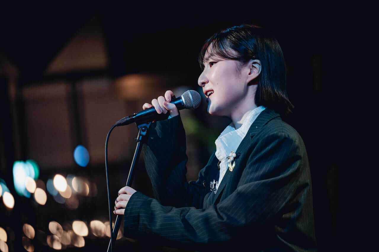 とある夜の別れを歌う「Wind」、雨に濡れながらもしたたかに前を向く「Floating」。ライブは肌寒く小雨が降っていたこの日の夜と手を取り合いながら進んでいく。来場者たちは食事や酒を楽しみつつ、座ったままでも心地良さそうに身体を揺らしていた。