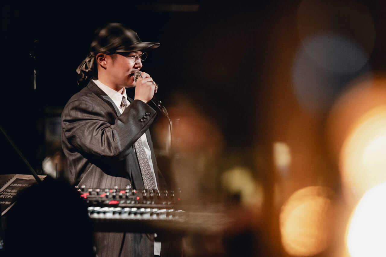 30分の休憩(という名の、DJ ji2kiaが作り上げる柔らかな時間)を経て、ZINのステージが始まる。オープニングは「The Sign」。鍵盤のコードが波紋のように広がり、ふくよかさと硬性を併せ持つベースが鳴る中で、ZINは「水を得た魚のようにrun」という歌詞の通り、音の海の中をファルセットボイスで自由に泳ぐ。曲が終わると、拍手の中に思わず飛び出てしまったような歓声が入り混じった。